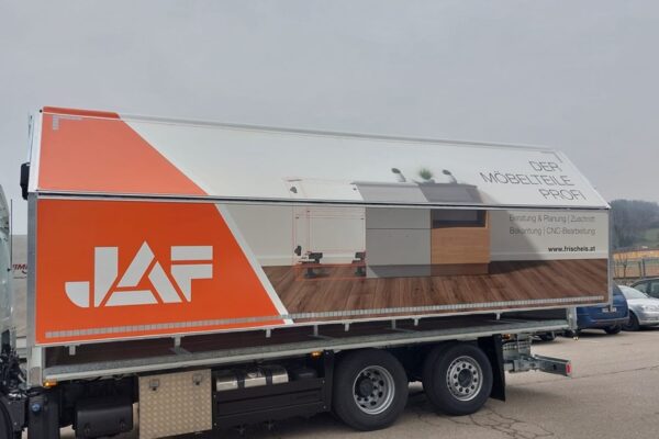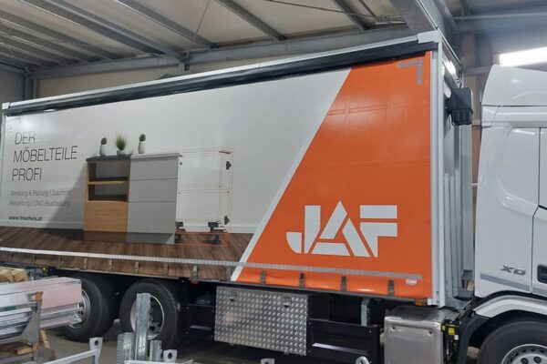 Wir produzieren Planen für LKWs jeder Größenordnung. Als einer der wenigen Hersteller in Österreich verfügen wir auch über das Know-how, um höhen- und längenverstellbare Jumbo-Aufleger (Planen für Sonderfahrzeuge) zu produzieren. Von der Ausmessung über die Fertigung und Beschriftung (optional) bis zur Montage kümmern wir uns um alles.